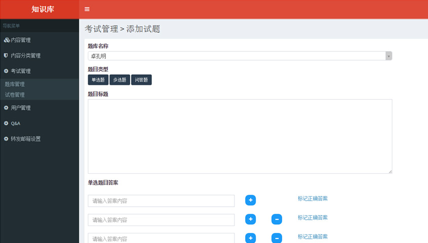 知識庫系統(tǒng)用來幫助朝陽財富公司理財師了解并熟悉本公司的產(chǎn)品及其金融行業(yè)相關(guān)知識。系統(tǒng)基于微信企業(yè)號開發(fā),實現(xiàn)了理財師在移動端的知識庫查詢,在線答題考試,在線問答(Q&A)等。系統(tǒng)后臺用來管理知識庫內(nèi)容,考試題庫和企業(yè)號用戶管理等。