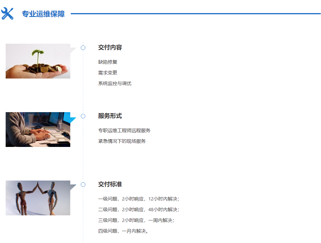 互聯(lián)網應用研發(fā)、運維一體化服務,面向具有明確的信息系統(tǒng)建設需求的企業(yè),提供快速交付軟件產品服務,并可根據企業(yè)需求進行后期迭代式開發(fā)服務。